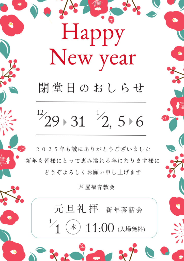 年末年始の閉堂日と元旦礼拝のお知らせ