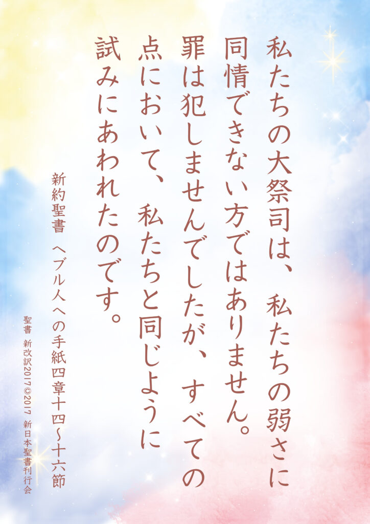 “あなたの弱さをよく知り、理解してくださるお方がいる”