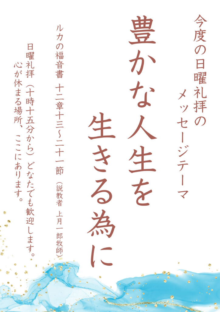「人があり余るほど持っていても、その人のいのちは財産にあるのではないからです。」(ルカ12:15)