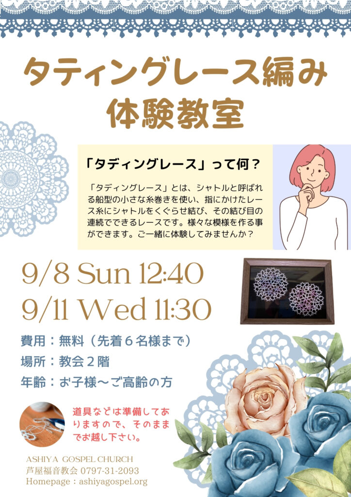 「タディングレース編みの体験教室」9月の実施日時のお知らせ