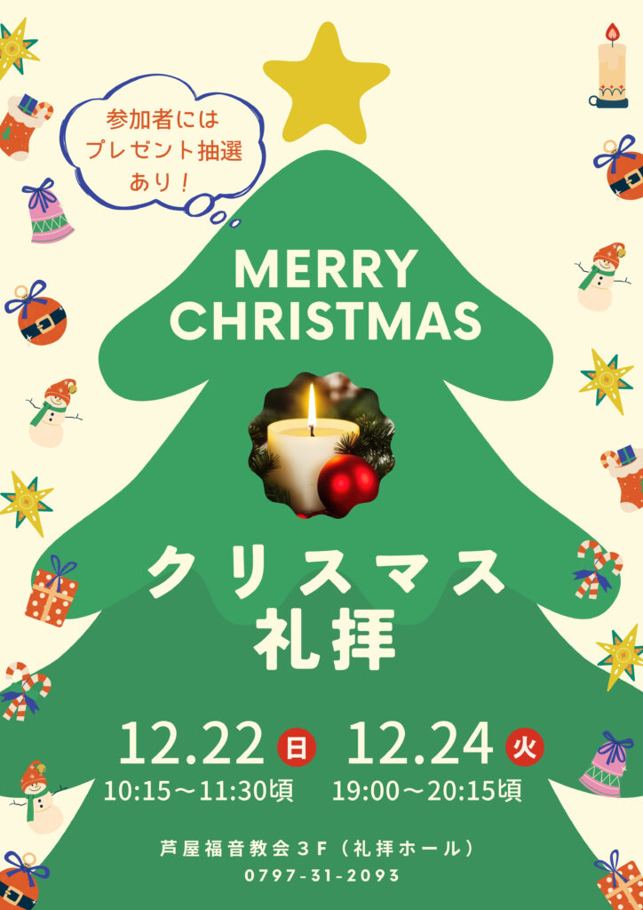 いよいよ「クリスマス礼拝」を迎えます。どなたでも、参加ご希望の方は、お越し下さい。日曜日は、聖歌隊によるクリスマス讃美とピアノソロによる特別賛美があります。水曜日は、「クリスマスイブ・キャンドルサービス」として、ボッサグロリアによるボサノバ・クリスマスソング演奏、聖歌隊によるクリスマス賛美、静かな中で聴くクリスマスの詩朗読、子ども達若い人たちによるクリスマスソング&ダンス、ゴスペルチーム「Joyful Peace Gospel Choir」による熱いゴスペルソングなど、教会ならではのクリスマスを楽しんで頂けます。(参加者には、先着15名様までプレゼント抽選があります。はずれはありません!^^)是非お越し下さい♪