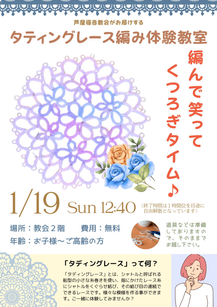 1月の「タディングレース編みの体験教室」のご案内