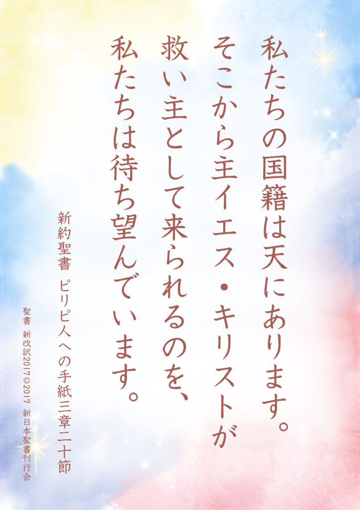 「私たちの国籍は、天にあります。」(ピリピ3:20)