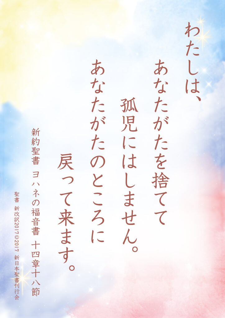 #芦屋#心の支え#新しい一歩#人生の意味#礼拝に行ってみよう#神様の愛#初めての教会#ヨハネの福音書#不安な時代を生き抜く#共にいてくださる神