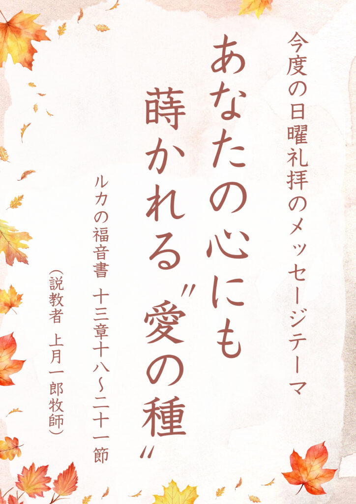 #あなたは愛されている#芦屋福音教会#日曜礼拝#福音(Gospel) #イエスキリスト#神の国#心の癒し#からし種のたとえ#パン種のたとえ#希望の種