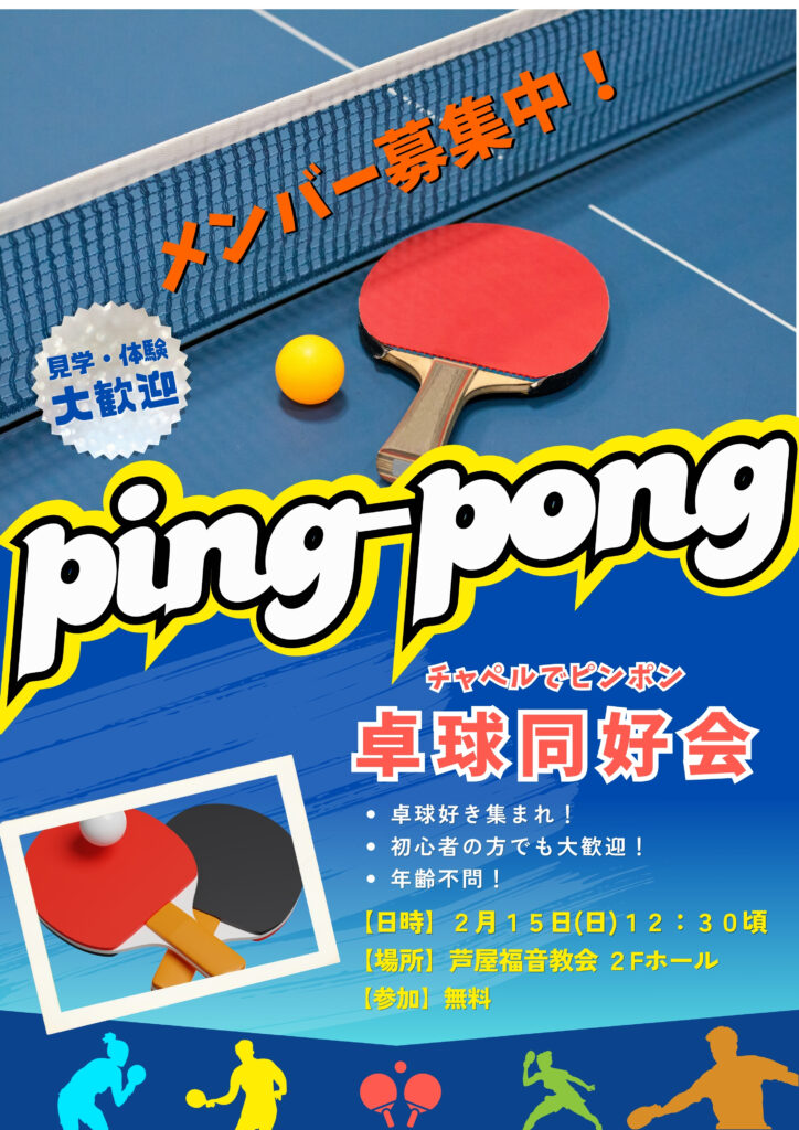 #芦屋#芦屋市#卓球#ピンポン#運動不足解消#日曜日の過ごし方#リフレッシュ#芦屋福音教会#地域コミュニティ#卓球同好会